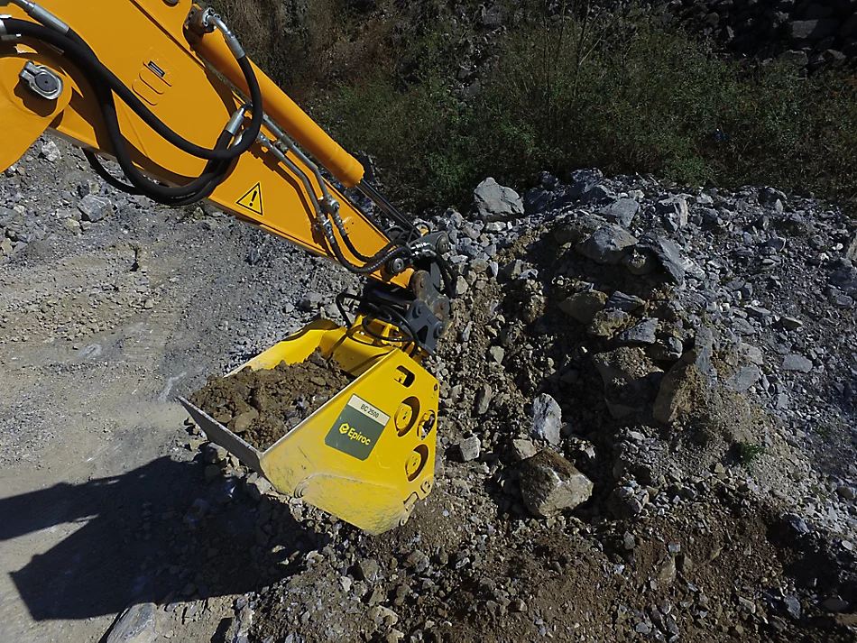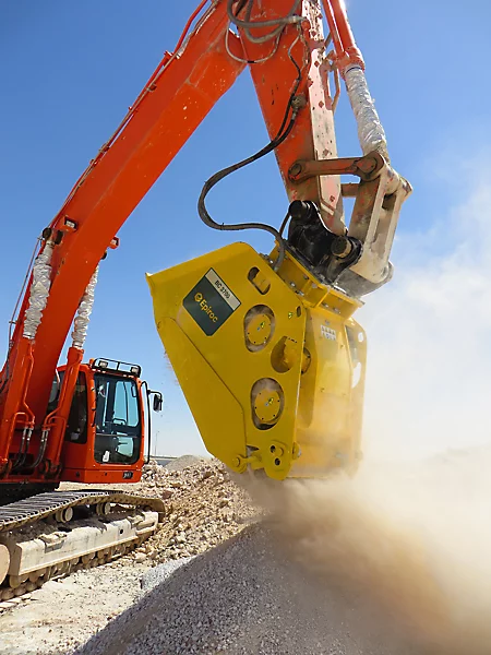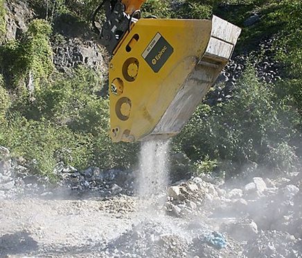 Excavator rock crusher buckets for carriers of 18-54 tons